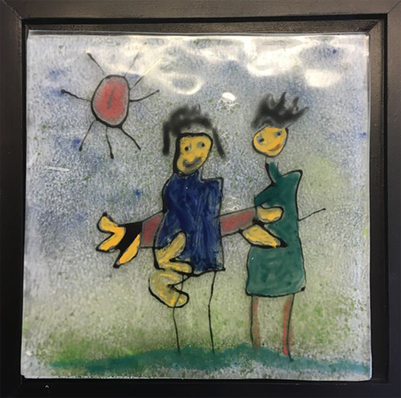 Tegning lavet af min 4-årige datter overført til glasfad 23 x 27 cm.