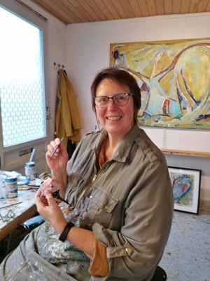 Jeg kom rigtig i gang med at male med acryl maling for 20 år siden, da jeg var på et malerkursus på den græske ø, Kalymnos. Der fik jeg for alvor lyst til videreudvikle min kreative side til også at male. Når jeg maler, sker det i mange processer, før jeg er tilfreds og maleriet er helt færdigt. Der skal være harmoni og balance, og i mine malerier er alle farver repræsenteret.